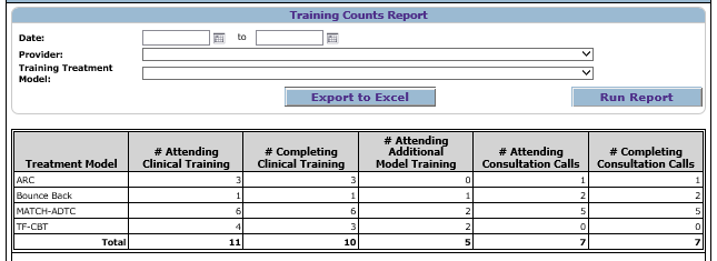EBP Tracker not only provides a secure online data system to measure and report on children’s mental health treatment outcomes, but it also provides a way to track Provider training. This enables CHDI to quickly run reports and track training events, keeping users informed about the training models.